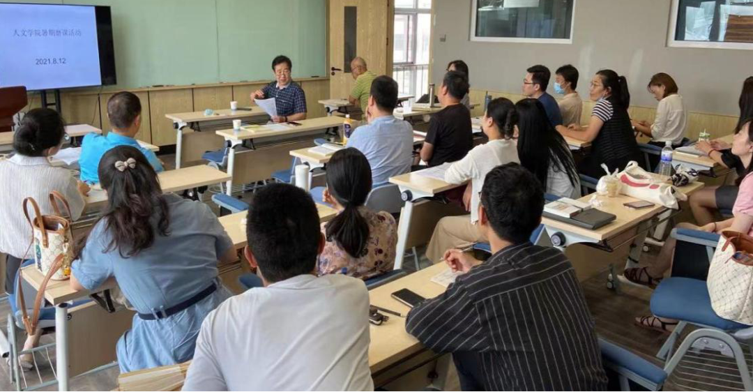 齐心协力研磨课青年教师共成长 为提高学院青年教师教学能力,适应学校本科专业课程评估要求,8月12日,人文学院组织青年专业教师在A1教学楼class blue教室开展了青年教师磨课(说课)活动。 活动伊始,汉语言文学教研室主任汤伟介绍了参与本次磨课(说课)活动的评委老师和活动流程。 活动最后,各位评委老师对参与本次磨课(说课)活动的青年教师的表现进行了详细的点评,并提出宝贵的意见。