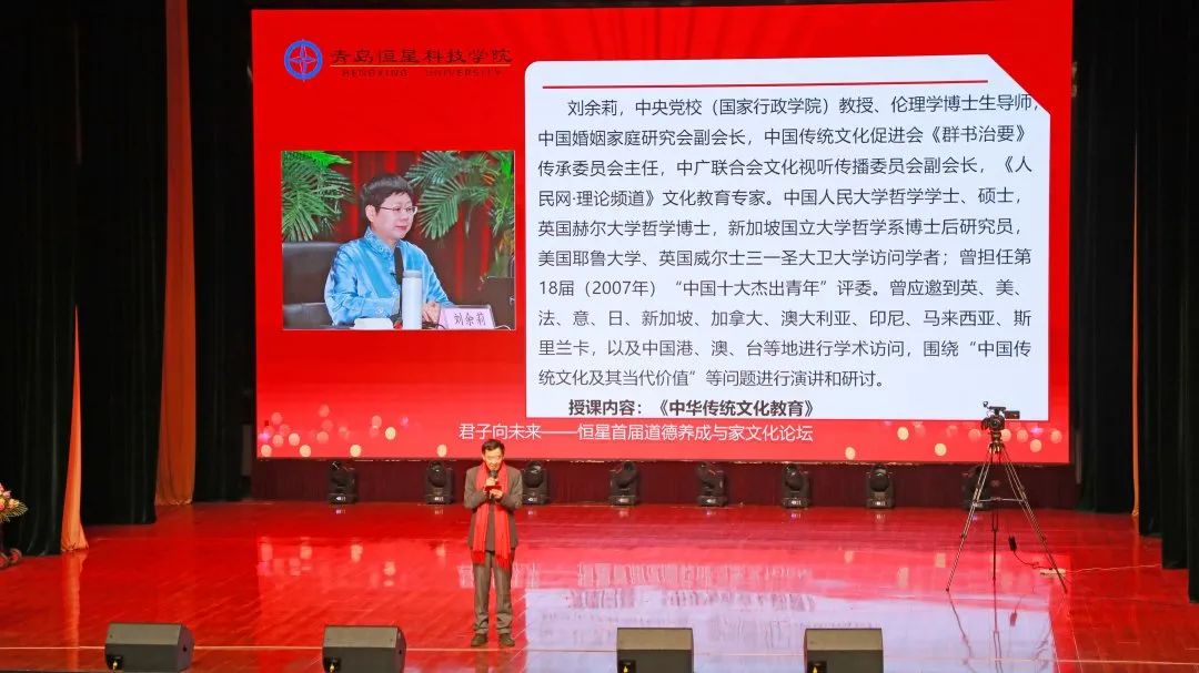 君子向未来 恒星首届 道德养成与家文化论坛及 闭幕仪式 初心不与年俱老,奋斗永似少年时。为复兴中华传统文化,积极推动群众特别是青少年传承好中华优秀传统文化,青岛恒星科技学院开展“君子向未来”恒星首届道德养成与家文化论坛,积极推动中华优秀传统文化融入教育教学,让青少年不断从中华优秀传统文化中汲取养分,为推进实现中华民族伟大复兴提供精神动力。 今天我们有幸邀请到了范业赞教授为我们讲解《德行天下》。他讲到,人的命运不是抽象的,而是实实在在的。人生苦短,短短数十载,万物都有其发展规律,而命运却是可以自己创造的的。范业赞老师从四个方面进行讲解,把命运掌握在自己手中才能寻找到生命的闪光。在范教授讲解下,我们应掌握自己的命运,做命运的主宰者,欣赏那一路上血与汗化成的灿烂锦绣。 李宁宁教授带领我们了解了朱熹制定的《白鹿洞书院揭示》,为了管理学院,约束学生的行为,短短一百来字,却包含了丰富的内容,提出了教育的目的、内容,以及为学之序和修身、处事、接物的要领,体现了朱熹以“格物、致知、诚意、正心、修身、齐家、治国、平天下”等一套儒家经典为基础的教育思想,成为以后影响中国封建社会七百年的主要教育思想,并传播到朝鲜半岛、日本和东南亚等地,可谓影响深远。为学习与传承儒家文化,我校建立了东佳书院。东佳书院不仅仅是一种文化符号,更是一种精神体现,是我们对教育和传统的重视,也是我们复兴传统的印证。 满培元,瑶族医药药浴疗法国家非遗传承传承者、望眼诊病诊疗专家、古老瑶医传承者、瑶医手法治疗疑难杂病专家。 中医养生是以中医理论为指导,根据人体生命活动变化规律,通过各种方法来调摄身心,养护生命、预防疾病,从而达到增进健康、延年益寿的目的。在满培元老师和张海锐老师的讲解下,我们领悟到在进行中医养生时,我们应根据每个人具体的情况具体实施,采用适宜的方法,综合辨证施养,才能保证人体阴阳平和、气血和调,方可健康长寿。此外,在讲解期间满老师还邀请多位老师上台亲身感受中医养生的魅力。使我们了解到只有全面地科学地对身心进行自我保健,才能达到防病、祛病、健康长寿的目的。 中华传统文化教育——刘余莉 中华优秀传统文化教育以弘扬爱国主义精神,即开展以天下兴亡、匹夫有责为重点的家国情怀教育;开展以仁爱共济、立己达人为重点的社会关爱教育;开展以正心笃志、崇德弘毅为重点的人格修养教育。为坚定文化自信,加强中华优秀传统文化教育必不可少。故此,今天我们有幸邀请到刘余莉教授为我们讲解中华传统文化教育。通过刘教授的讲解,我们了解到中华传统文化正是帮助学生深扎民族根、熔铸中国魂的重要方式。同样也让我们了解到传统文化教育能够让学生变得更有担当和更有责任感。此外,传统文化教育对学生交往能力的培养,也有着其他学科难以比拟的优势。 ——张发 张发,现任海南省公民“道德与法”建设促进会会长、海南省预防犯罪研究会执行会长、中华炎黄文化研究会文明传承委员会理事、国际儒学联合会理事、教育传播普及委员会委员、世界至德总会第十九届董事局常务副主席。 张发老师从法律与道德之间的内在关系告诉我们:法律和道德是人类社会的两大基本规范,法律的背后是道德,管理好自己的念头才能走好自己的健康人生路。在活动现场通过观看《迟来的爱》和《妈妈我错了》警示教育视频,既看到了罪犯对犯错的悔恨和对家人的愧疚,也对守规矩、坚持底线思维、敬畏和遵守法律有了更深的认识。在这次的学习中,我们懂得了道德和法治教育是人生不可缺少的一部分,并且每个人不仅要遵守法律,更应当从内心当中杜绝犯罪的想法。在内心中,建立一个约束自己的心灵律法,在人生的道路上走得更远。 闭幕仪式 文化赋能,传承创新。在癸卯兔年伊始,青岛恒星科技学院全体师生,通过线下和线上相结合的方式,于2023年1月31日至2月4日举办了为期五天的“君子向未来——恒星首届道德养成与家文化论坛”,开启了新一年的新征程。 五天论坛,学校线上线下共邀请了15位专家学者,给大家分享了16场报告。这些专家学者有国家的退休干部、中共中央党校的教授,非物质文化遗产的传承人,也有学校的青年教师。他们在各自的领域都有自己独到的见解和功夫很深的技艺,将传统六艺礼、乐、射、御、书、数,结合新时代的特征进行了有效的创新和转化,推动了中华优秀传统文化的创造性转化和创新性发展。 2023年2月4日下午16:00-17:30本论坛在国际交流中心举行毕班仪式,至此“君子向未来——恒星首届道德养成与家文化论坛”圆满落幕。 《礼仪之邦》手语舞 张川老师 刘晓蒙老师 曹国磊老师 单鹏老师 陈氏十九式太极拳 优秀学员颁奖 《义门赋》朗诵 陈昌金董事长讲话 寄语祝福 国之本在家,家之本在身,身之本在德,德之本在孝。学校在推动中华优秀传统文化进校园的十余年的进程中,一直将孝亲尊师作为我们理论学习和实践行动的根本遵循。培养君子品格是我们的执教方略,注重道德养成是我们的教育使命,推进家文化建设与发展是我们每个中华儿女的责担当。