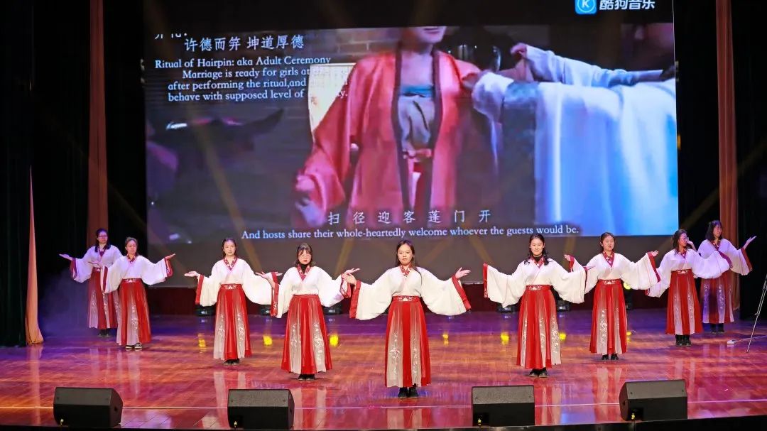 一场手语舞《礼仪之邦》揭开了毕班仪式的帷幕。“吾老人幼皆亲爱,扫径迎客蓬门开。看我泱泱礼仪大国,君子有为德远播。”轻盈的舞姿诠释着华夏礼仪之邦的深厚底蕴。