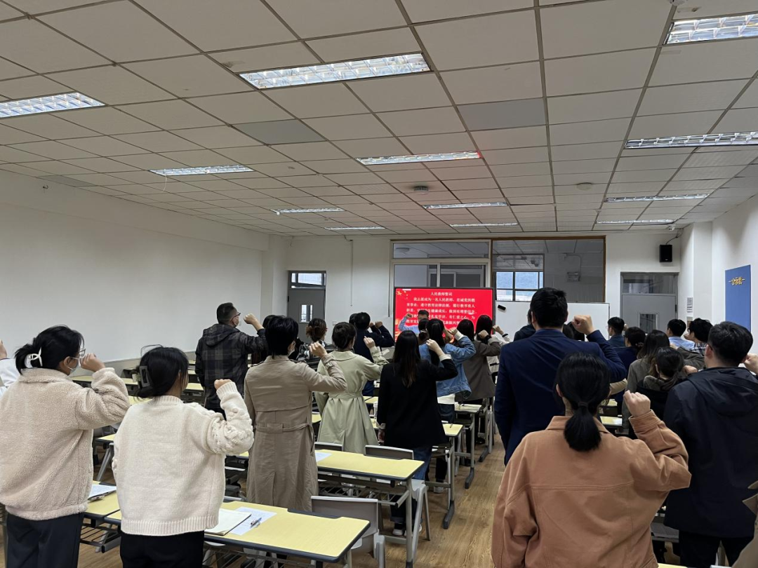 为集中展现我院教师爱党爱国、立德树人、自信自强的精神风貌,引导激励广大教职工以实际行动迎接党的二十大胜利召开,进一步加强师德师风建设,2022年10月5日下午4点30分,我院于A3-102A会议室召开了师德师风月交流会,刘振勇书记主持会议。 会议分四项进行: 一、学习学校相关通知文件、习近平总书记给北京师范大学“优师计划”师范生重要回信的相关内容、师德师风相关文件。 二、宣读人民教师誓词 全体教职工共同宣读了师风师德誓词,庄严承诺认真履行教师职责。 三、签订《师德师风承诺书》 全体教师在师风师德承诺书上郑重签上了自己的名字,严格遵守教师行为规范。 此次会议,提高了全体教职工的思想认识,明确了师德师风建设的具体要求与目标,真正将师德师风建设工作落到了实处。全体教师表示将会带着使命,带着责任,以真诚的爱心温暖学生,以高尚的师德影响学生,用健全的人格塑造学生的完美心灵。