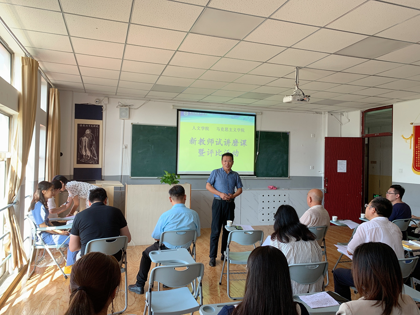 为了更好地促进青年教师的专业发展,切实提高青年教师的综合素质,提升青年教师的业务能力。2020年9月7日,人文学院联合马院举行“人文学院与马院新教师磨课暨评比活动”。本次活动在A2教学楼306会议室举行,由社会工作专业教研室李雪倩主任主持。两院专家、教授对本次活动非常重视,人文学院马士远院长、刘振勇副院长、杨树增教授、潘澈教授、汤伟主任、李雪倩主任以及马院的杨辉教授、张至昊主任、学校督导刘晓丽老师拨冗出席并担任点评嘉宾。人文学院和马克思主义学院全体教师应邀参加本次活动。