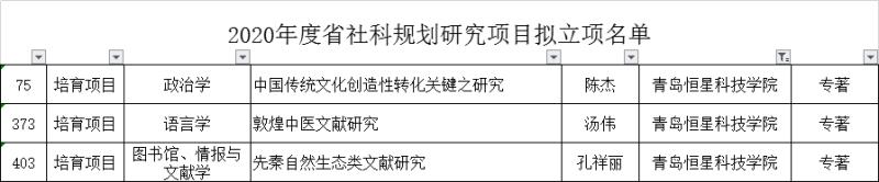 2020年度山东省社科规划研究项目经过网上初评、专家评审及部务会研究,从1670项项目申报中,共评选出拟立项项目529项。我校人文学院3项课题立项均得到获批。立项名单祥见下表: 拟立项获批名单公布后,我院紧锣密鼓于2月26日下午,召集项目组成员召开了科研项目研讨会,就立项项目的具体研究分工、预期研究目标、课题建模等问题展开了详细深入的研讨。会议进一步明确了各成员的研究方向与任务等,并签订了项目合同书。科研处处长在会议上指出,这次项目的成功立项,证明了教师们一直以来的努力没有白费,教师的科研能力和水平得到了证明,各成员要继续保持昂扬的斗志,务实的科研风貌,提高自身的教学和科研水平。 该项目的立项,对人文学院学科建设与发展、提高教师的科研水平与能力起到了积极的作用,为我校教育教学改革、教学评估和科研水平提高等工作起到了积极的推动作用。![]()