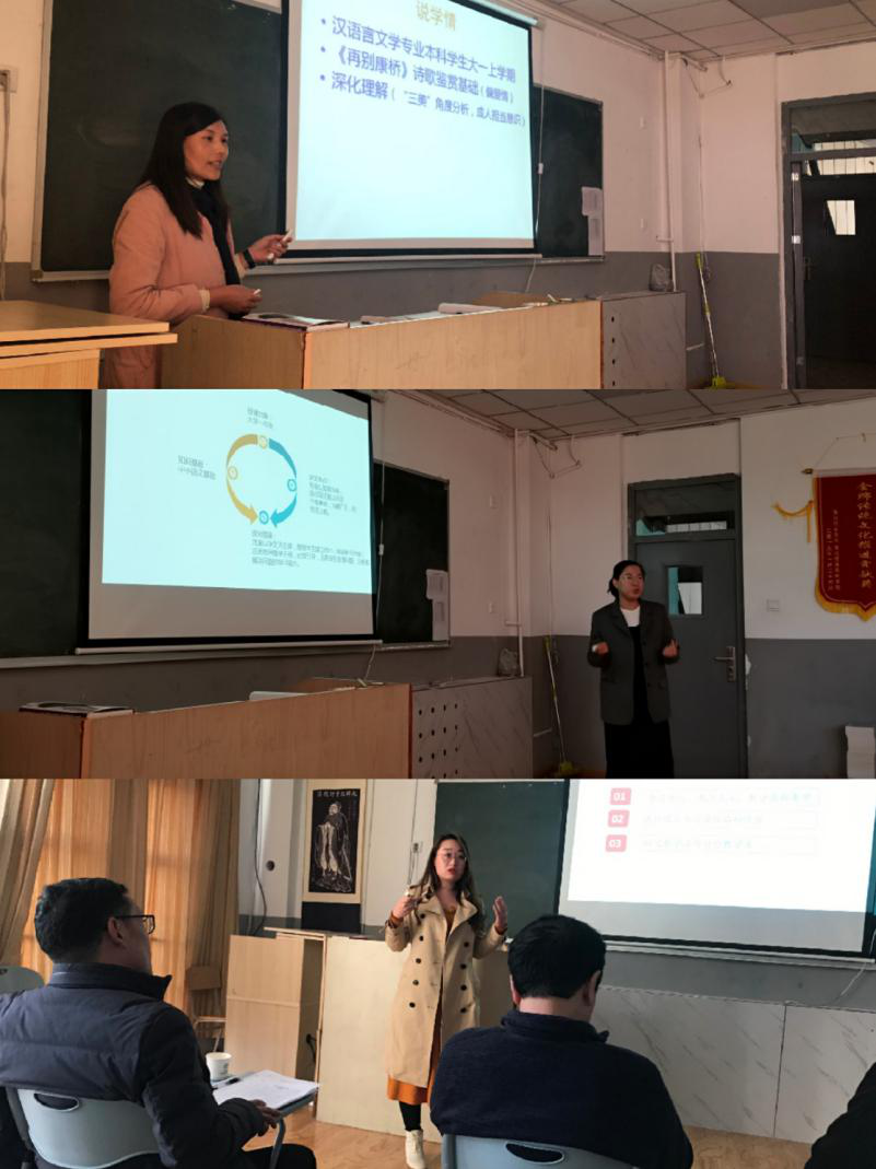 秋高正好切磋,教研不赛不砺。为落实立德树人的根本任务,贯彻以人为本的基本原则,突显教学中心地位,促进内涵建设,提高人才培养质量,按照学院相关通知要求,人文学院于2020年11月3日下午三点半组织专任教师在A2-306进行说课比赛。 (图一:各位专家评委听教师说课) 人文学院马士远院长、汉语言文学专业带头人潘澈教授以及杨树增教授、姜振昌教授、赵东栓教授、樊荣教授、教研室主任汤伟博士及人文学院所有骨干教师出席了本次说课大赛。为了确保活动的公正性和规范性,说课大赛由六位教授组成了专家评审。教研室主任汤伟博士主持大赛并宣布了比赛规则,各位评委严格按照标准现场打分。 (图二:教研室主任汤伟博士主持说课大赛) 经过层层选拔,激烈角逐,共有8名教师参赛。各位参赛选手精心准备,胸有成竹,从容镇定,思路清晰,从教材性质,教学目标,教学思路,教学过程,教学设计等方面入手,利用多媒体辅助进行说课。每位参赛教师在短短15分钟内,为现场所有教师展现了个人的教学能力和教学魅力。经过一番激烈的比拼,王晓晗、王倩两位教师荣获一等奖;张文、陈金秋两位教师荣获二等奖;武奕、康静丹、袁堂红和陈德丽等四位教师荣获三等奖。 (图三:王晓含老师和王倩老师) (图四:袁堂红老师、武奕老师、康静丹老师) (图五:陈德丽老师和陈金秋老师) 以说促研助教学,精心构思展风采,说课大赛结束后,马士远院长及各位教授评委对各位选手给予高度的评价,也指出教师下一步需要努力的方向,希望所有教师经过一次次的学习、打磨,不断提升教学能力、为伟大的教育事业而努力奋斗。同时所有专家评委对一等奖获奖者王晓晗老师、王倩老师的说课内容进行再次指导,鼓励二位代表学院出征,参加全校的说课比赛。 (图六:各位评委与大赛一等奖王晓含老师、王倩老师合照) 在一阵阵掌声中,一场充满激情的比赛完美落幕,但是教师们对教育教学的思考和探索没有止步。此次说课大赛直接反映了教师对教课的把握程度、驾驭能力,反映出教师的实际教学水平和研究能力。相信通过此次比赛,人文学院所有专任教师的教学水平会有一个质的飞越,让我们共同期待未来在教育教学中绽放异彩!
