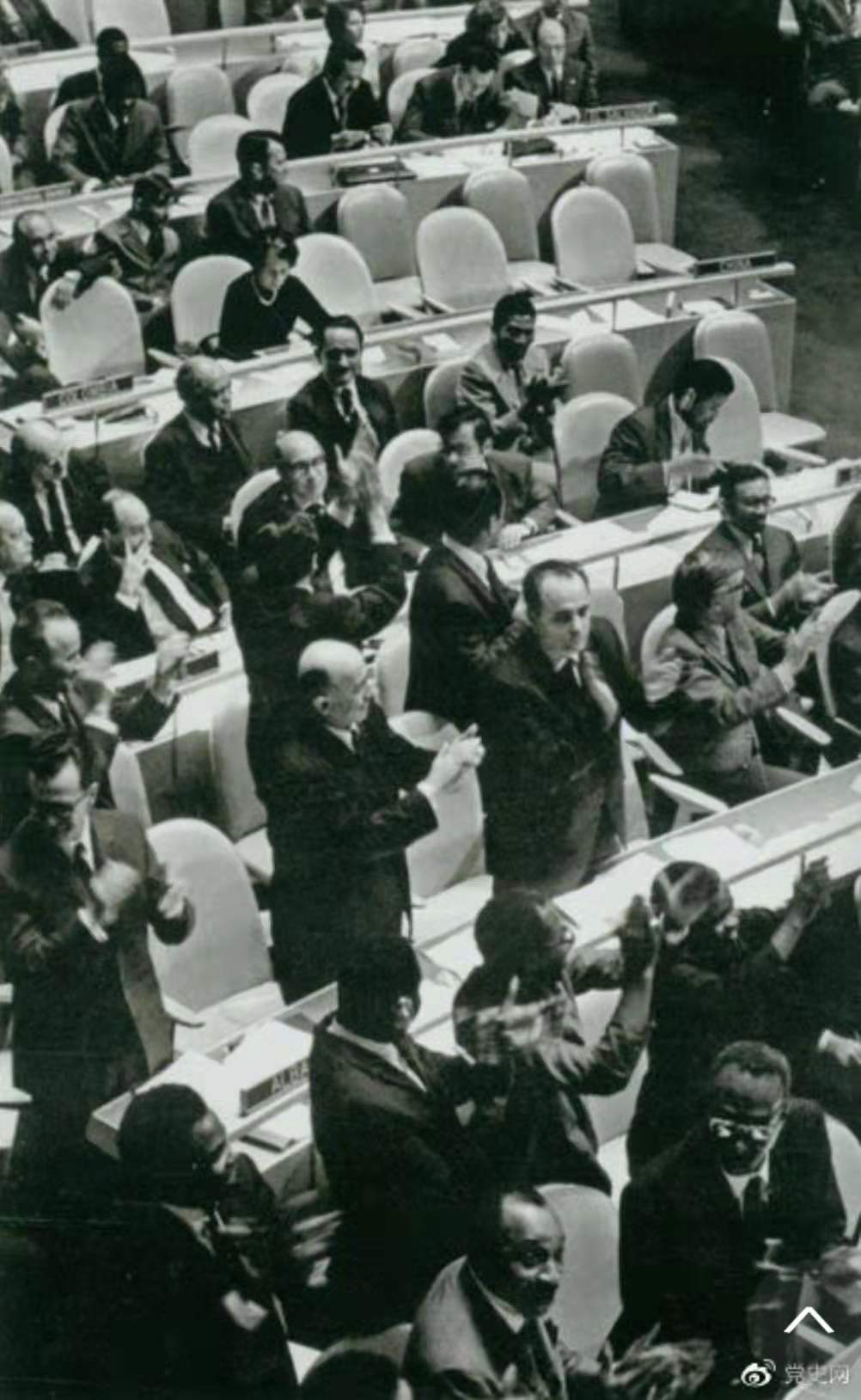 10月25日 第二十六届联合国大会以压倒性多数的票数通过2758号决议,恢复中华人民共和国在联合国的一切合法权利,并立即把蒋介石集团的“代表”从联合国及其所属一切机构中驱逐出去。11月15日,中华人民共和国代表团首次出席联合国大会。
