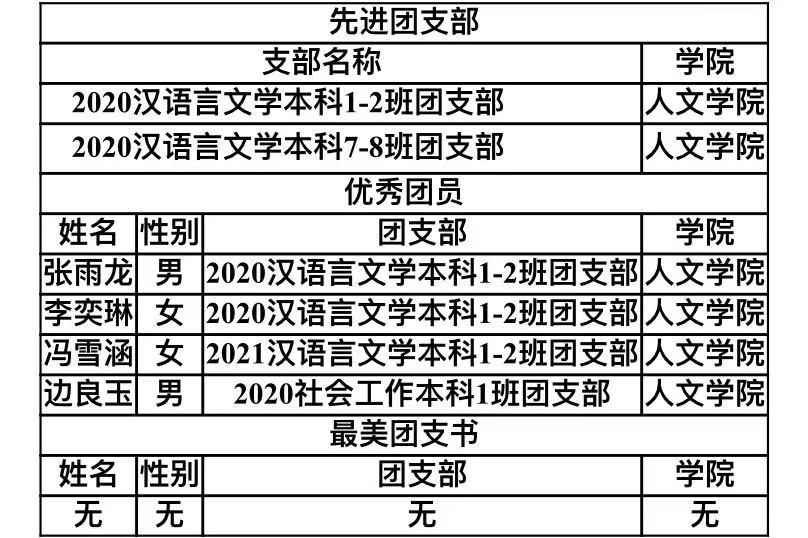 现将人文学院2023年度“市级先进团支部、优秀团员、最美团支书”公示如下: