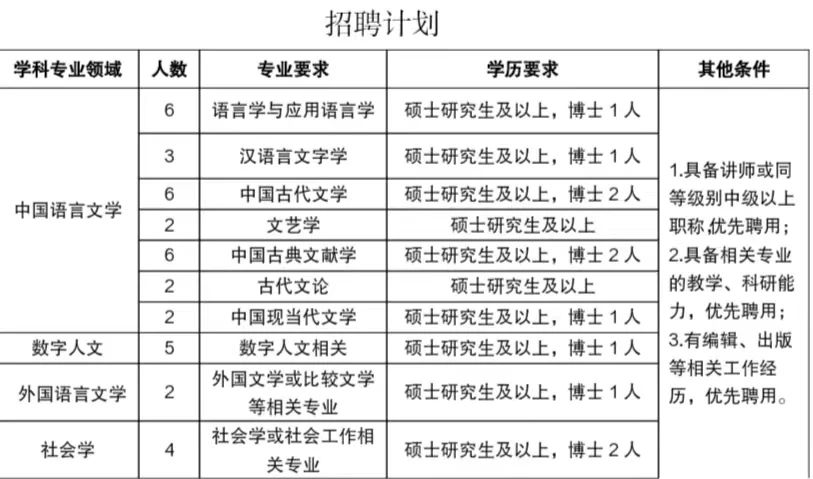 学院简介: 为贯彻落实中共中央办公厅、国务院办公厅《关于实施中华优秀传统文化传承发展工程的意见》和教育部实施中华优秀传统文化进校园工程,青岛恒星科技学院在长期开展中华优秀传统文化教育的基础上,于2019年12月成立人文学院。目前,学院设有汉语言文学、社会工作和中国语言与文化三个本科专业,在校生1500人。 人文学院秉承“溯源经典,立德树人;博学笃行,求真致远”的院训,坚持“行校共建,产教融合”的人才培养模式,致力于培养具有深厚中华优秀传统文化底蕴的应用型人才。 学院学术氛围浓厚,取得了丰硕的科研成果。截至2024年3月,学院已获批省级科研课题3项,市厅级项目近30项;出版学术专著7部;发表学术论文27篇。 为进一步满足学院高质量发展需要,加强人才队伍建设,现面向海内外招聘高层次专业人才。 招聘条件: 1.遵守中华人民共和国宪法和法律,具有良好的思想政治素质和师德师风修养; 2.热爱教育事业,热爱中华优秀传统文化,有责任心; 3.具有岗位所需的专业或技能条件,适应岗位要求的身体条件; 参照公办高校事业单位工资体系和标准确定工资待遇。 硕士:应届硕士毕业生每月综合薪资6000+,非应届毕业生按照个人情况确定聘任等级,应届毕业生2-3年可评讲师。 博士:符合博士引进层次的首聘年薪20-30万,安家费15-40万,科研启动基金3-20万元,未达层次博士按照副教授待遇执行,课题或各类项目等工作奖励单独计算。特殊人才引进一事一议。 按国家规定签订劳动合同,转接档案,接收户口,按公办学校标准足额缴纳社会保险和住房公积金,符合条件人员缴纳职业年金。 享受学校内“恒福金”政策,享受在职国内外访学进修资助、春节福利、中秋节福利、教师节福利等福利待遇。 在集团平台下,享受子女入托、入学等员工优惠政策(最高额度可优惠80%学费);对符合就业条件的家属,妥善安置集团平台内就业或推荐其他就业单位。 学校免费提供独立住宿空间,青年博士提供独立套间公寓,青岛市未购房在职期间免租金。经批准自主租房的,每月给予租房补贴。 其他:学校协助办理青岛人才住房补贴(硕士研究生800元/月,连续申请36个月,或享受10万元一次性购房补贴;博士研究生1200元/月,连续申请36个月,或享受15万元一次性购房补贴。)重大节日发放购物积分;提供话费补贴、餐补、交通补贴、结婚基金、孝亲基金等福利。 招聘流程: 1.报名 符合条件的应聘者将本人简历(含学历、职称、高校教师资格证、身份证等扫描件,以及科研、教学、管理、获奖等相关工作经历证明材料)发送至邮箱:1009821236@qq.com,电子邮件标题为“姓名+学历+职称+专业(或研究方向)+联系方式”。 2.资格审核、洽谈 学院诚邀初审通过人员携带完整个人简历、毕业证、学位证、职称证、相关证件原件及复印件、近期1寸免冠照片等材料到校考察洽谈。 3.录用 面试通过者按规定时间报到,办理入职手续。 联系方式 李老师:19906486992