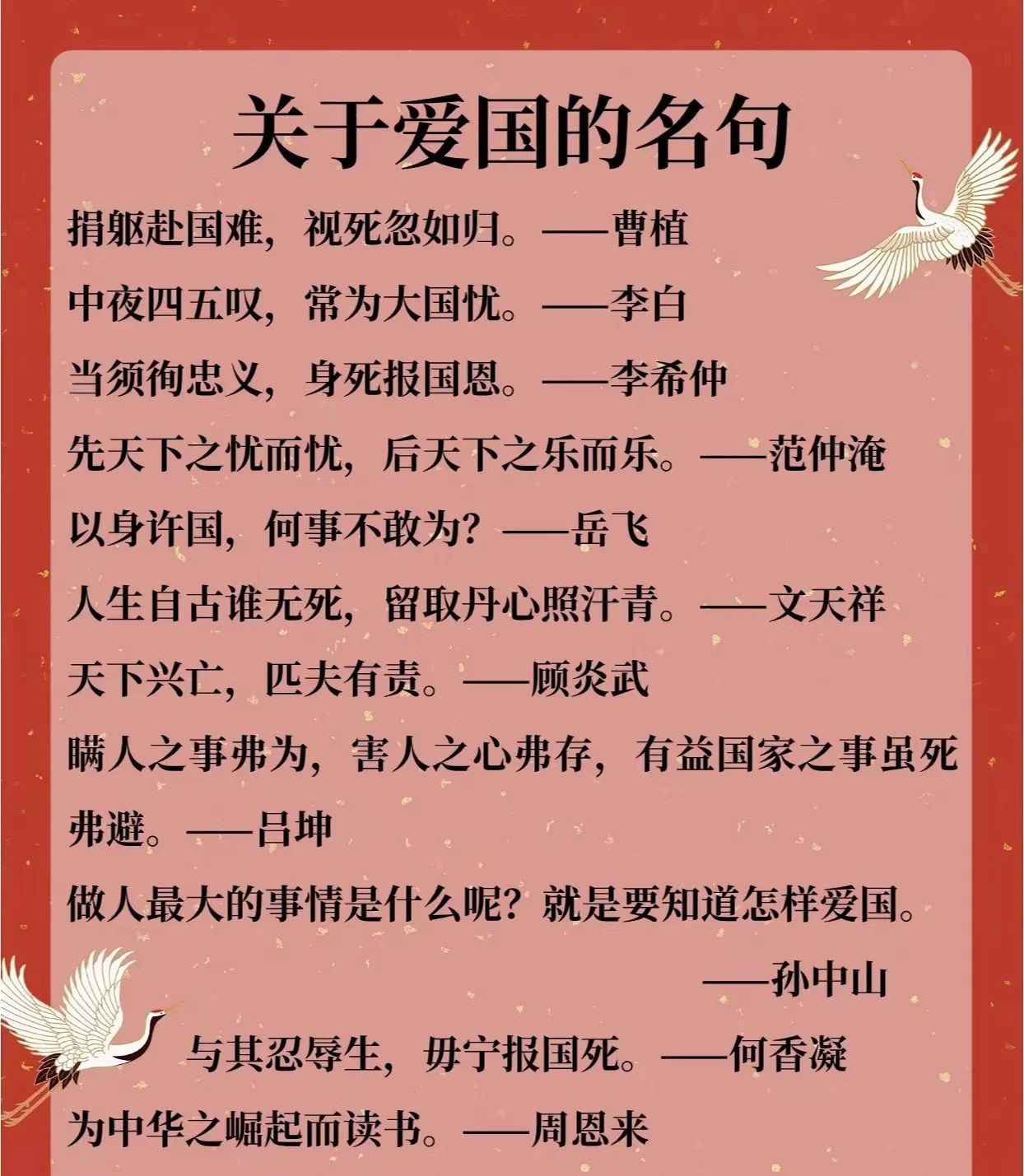 国庆节是由一个国家制定的用来纪念国家本身的法定假日。中国古代把皇帝即位、诞辰称为“国庆”。现在中国国庆节特指中华人民共和国正式成立的纪念日10月1日。 01 国庆节的历史 “国庆”一词,本指国家喜庆之事,最早见于西晋。西晋的文学家陆机在《五等诸侯论》一文中就曾有“国庆独飨其利,主忧莫与其害”的记载。我国封建时代、国家喜庆的大事,莫大过于帝王的登基、诞辰(清朝称皇帝的生日为万岁岁节)等,因而我国古代把皇帝即位、诞辰称为“国庆”。 今天称国家建立的纪念日为国庆节。1949年9月的政协第一届一次会议上决定把10月1日定为国庆节。这一天,中华人民共和国正式宣告成立,这是中国历史上一个最伟大的转变。 1949年10月1日下午3时,北京30万人在天安门广场隆重举行典礼,庆祝中华人民共和国中央人民政府成立。毛泽东主席庄严地宣告中华人民共和国、中央人民政府成立,并亲自升起了第一面五星红旗。 国庆节快乐 我们生在红旗下,长在春风里。 人民有信仰,国家有力量! 目光所至皆为华夏! 五星闪耀皆为信仰! 愿以吾辈之青春, 捍卫盛世之中华。 让我们在这个特殊的时节, 共同祝愿, 在这月舞星辉、 国歌飘扬的金秋时节, 愿我们的家国情怀永远如此坚定!