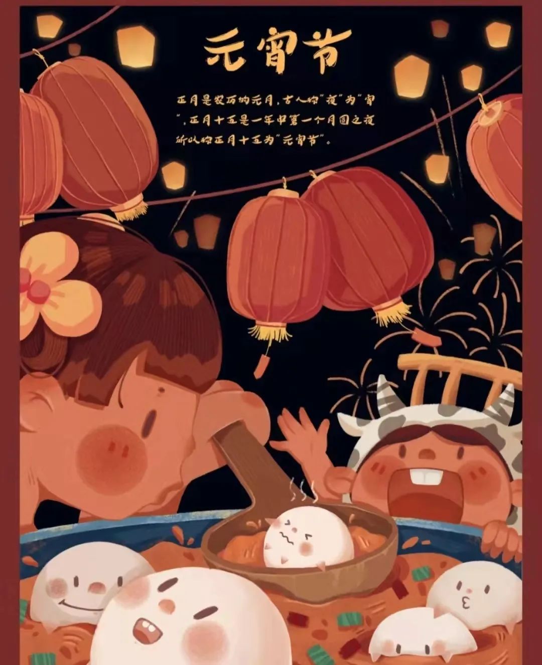 元宵节日由来 元宵节,又称上元节、小正月、元夕或灯节,为每年农历正月十五日,是中国的传统节日之一。正月是农历的元月,古人称“夜”为“宵”,正月十五日是一年中第一个月圆之夜,所以称正月十五为“元宵节”。 根据道教“三元”的说法,正月十五又称为“上元节”。元宵节习俗自古以来就以热烈喜庆的观灯习俗为主。 元宵节日习俗 元宵节是中国的传统节日之一。元宵节主要有赏花灯、吃汤圆、猜灯谜、放烟花等一系列传统民俗活动。此外,不少地方元宵节还增加了游龙灯、舞狮子、踩高跷、划旱船、扭秧歌、打太平鼓等传统民俗表演。 吃元宵 正月十五吃元宵,“元宵”作为食品,在中国也由来已久。最早叫“浮元子”后称“元宵”,生意人还美其名曰“元宝”。北方“滚”元宵,有热热火火,团团圆圆之意;南方“包”汤圆,有团圆美满之意。 闹花灯 农历正月十五是“元宵节”,此节日民间有挂灯、打灯、观灯等习俗,故也称灯节。在正月十五晚上,街头巷尾,红灯高挂,有宫灯、兽头灯、走马灯、花卉灯、鸟禽灯等等,吸引着观灯的群众。 猜灯谜 猜灯谜又称打灯谜。每逢农历正月十五,传统民间都要挂起彩灯,燃放焰火,后来有好事者把谜语写在纸条上,贴在五光十色的彩灯上供人猜。灯谜增添节日气氛,展现了古代劳动人民的聪明才智和对美好生活的向往。 舞狮子 “舞狮子”又称“狮子舞”、“太平乐”,一般由三人完成,二人装扮成狮子,一人充当狮头,一人充当狮身和后脚,另一人当引狮人,舞法上又有文武之分,文舞表现狮子的温驯,有抖毛、打滚等动作,武狮表现狮子的凶猛,有腾跃、蹬高、滚彩球等动作。 元宵节日意义 元宵节也是中国传统节日中一个浪漫的节日,元宵灯会在封建的传统社会中,给未婚男女相识提供了一个机会,传统社会的年轻女孩不允许出外自由活动,但是过节却可以结伴出来游玩,元宵节赏花灯正好是一个交谊的机会,未婚男女借着赏花灯也顺便可以为自己物色对象。 元宵灯节期间,又是男女青年与情人相会的时机。所以元宵节可以说是地道的中国情人节。