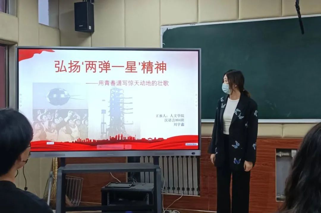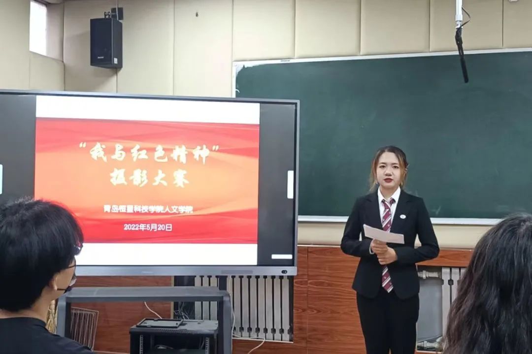 喜迎二十大、献礼团百年。为大力弘扬红色精神、顽强奋斗的英雄精神、忘我奉献的先进模范、雷锋精神、抗疫精神……人文学院特于2022年5月20日晚在A2-303教室组织开展“我与红色精神”主题摄影大赛。 本次大赛由刘迅男、刘宇鑫、张玉丹三位同学参加。 首先,刘迅男同学通过亲身经历向大家讲述了“用热爱守护那抹国旗红”,赢得了大家的热烈掌声。 随后,刘宇鑫同学通过分享“两弹一星”精神,呼吁了广大学子参与其中,用实际行动证明自己,为国家做贡献。 张玉丹同学通过讲述自身的志愿服务经历,让同学们认识到,青年学子也可以在广阔的社会上绽放光芒、做出贡献。 最后,大家共同观看红色主题视频,一同领略祖国的大好河山。