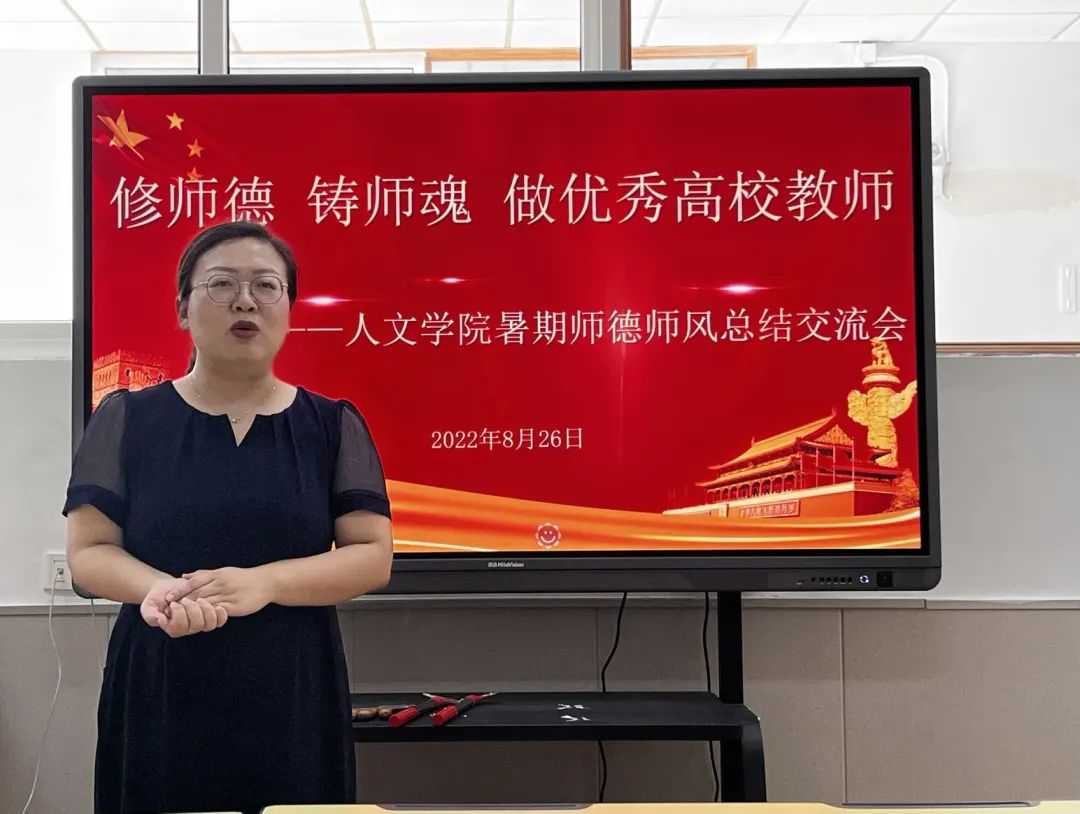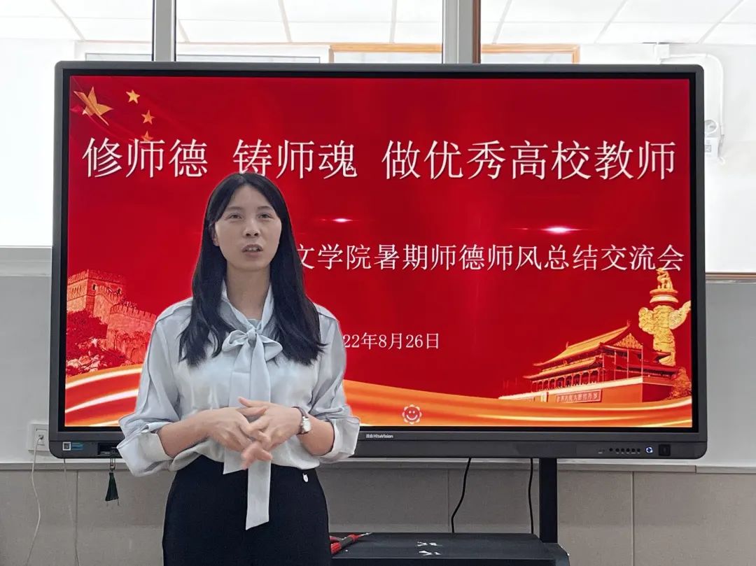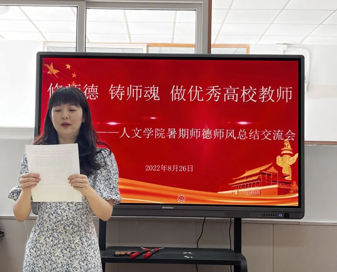 为深入推进师德师风建设,巩固教职工的初心使命,2022年8月26日下午3点,我院于A3-102A会议室召开了师德师风学习心得交流会,执行院长黄岩主持会议。 会议分四项进行: 一、心得交流。各位青年教师分别从思想政治方面、教师岗位职责方面、教书育人品行等多个方面分享了自己的学习心得,结合自己的切身体会,发自内心,深入细致,赢得了在场教职工的热烈反响。 二、孔祥丽院长进行总结发言。孔院长肯定了各位教师的学习成果,强调作为教师,师风师德是摆在第一位的,要致力于培养德智体美劳全面发展的学生,也要注重提高自身素质,进行“终身学习”。 三、宣读人民教师誓词 全体教职工共同宣读了师风师德誓词,庄严承诺认真履行教师职责。 四、签订《师德师风承诺书》 新入职教师在师风师德承诺书上郑重签上了自己的名字,严格遵守教师行为规范。 会议最后黄岩院长强调师风师德体现要在日常教学工作中,对学院师德师风工作提出三方面要求:一是“教师”职业责任远大,教师岗位神圣,教职工所授所讲必须严格对标“教师”岗位要求;二是严以律己,强调“学高为师,德高为范”,教师要对自己时时刻刻高标准、严要求;三是“大家庭”和谐团结欣欣向上,所有教职工必须牢记校训,有才有德,相互理解,努力提高自我的幸福感、获得感。